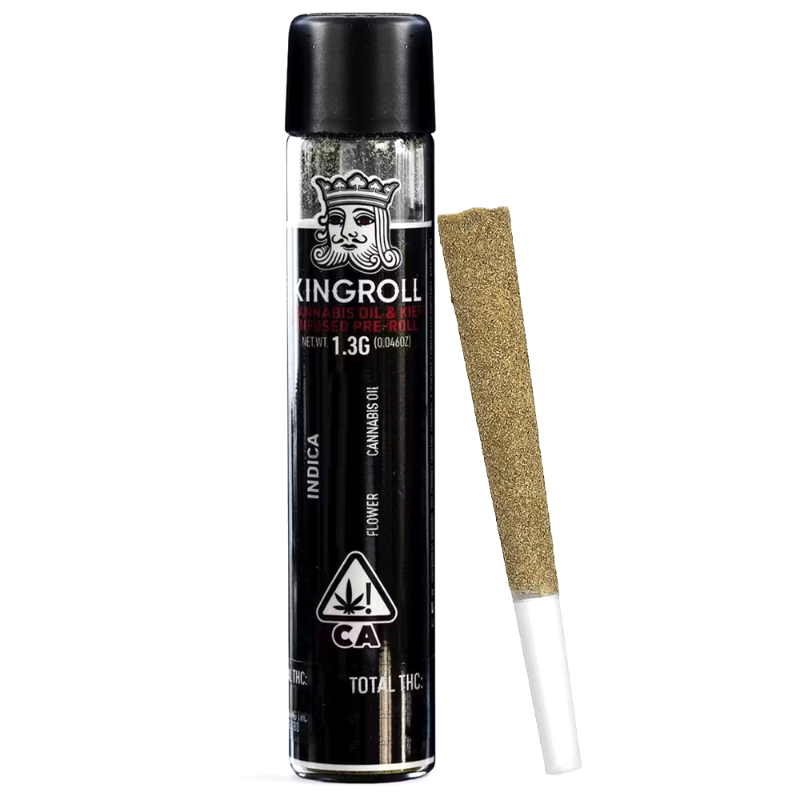 The Kingroll is a 1.3g, kief-coated pre-roll, expertly infused with Kingpen's award-winning oil and premium flower to deliver a top-tier smoking experience. Infused with Kingpen’s celebrated strains, it offers the rich flavors and effects you know and love. Coated in golden kief sourced from high-quality flower, the Kingroll packs an extra punch of cannabinoids and natural terpenes. Rolled in ultra-thin, unbleached natural paper, it ensures that you savor the full terpene profile with every puff, without any interference from the paper. Made with single-strain flower never shake the Kingroll guarantees a smooth, exceptional smoke from start to finish. White ash has never looked so good.