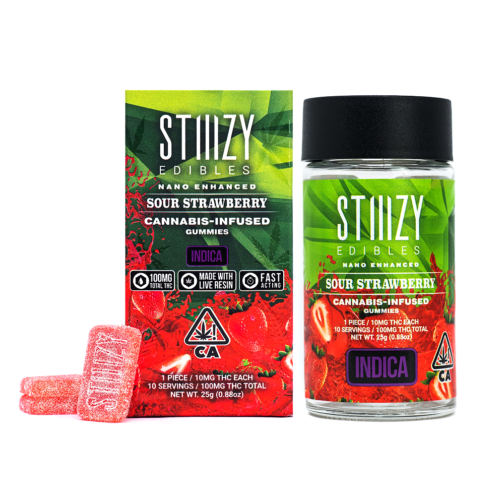All edibles are not created equal. STIIIZY's new Sour Weed Gummy line features cutting-edge formulas for rapid onset of effects, and infused with cannabis extracts for a true full spectrum experience. Every bag features 10 doses at ten mg per dose for a total of 100 mg of THC per bag. Fast-acting, cutting-edge formulas.