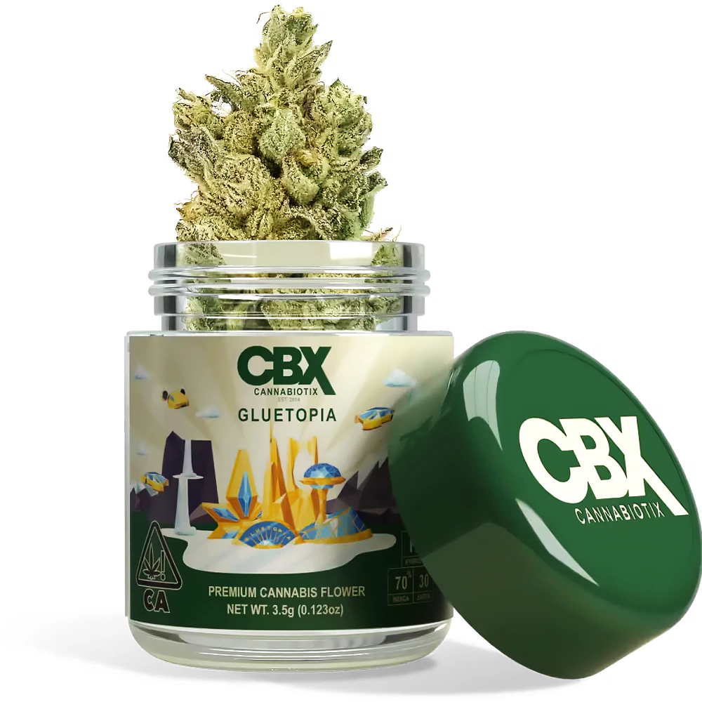 Gluetopia is a cross between CBX Glue and our flavor-heavy Zereal Milk has resulted in this gemmed-out phenotype. Dripping in resin and sticky to the touch, the Gluetopia exudes an incredibly complex arrangement of terpenes for a chocolatey, tangy, hashy funk profile. These crystal-soaked chunky buds are extremely sappy and present some of those beautiful purple hues from the Zereal Milk while also sporting a blizzard of trichomes. The joyful, soothing, and euphoric high produced by this tasty hybrid is great for those with anxiety and depression.